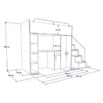 Maximize storage with the Alaska Bunk Bed’s integrated features. The design includes a spacious wardrobe for clothing and personal items, a desk for studying and creative activities, and a multitude of shelves to keep books and toys neatly organized. Additionally, the steps leading up to the bunk are equipped with convenient drawers, perfect for storing small treasures and essentials.