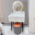 Its matt grey finish adds a modern touch to any room—be it your bedroom, bathroom, closet, or hallway. Designed with two spacious drawers, it provides convenient storage for your beauty essentials, while the comfortable cushioned stoolensures a pleasant experience every time you get ready.