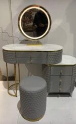 Complete with a comfortable cushioned stool, this vanity set is built for both comfort and convenience. Whether you’re getting ready for work or an evening out, this dressing table ensures you do it in style.