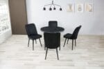 The Royal Mermer Black Round Table with 4 Velvet Chairs is perfect for those who value both style and functionality. The round table design is space-efficient, making it an excellent choice for smaller dining rooms or kitchen spaces. Despite its compact size, the table comfortably seats four, making it ideal for both everyday use and special occasions.