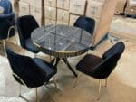 - Material: The set includes four matching chairs, each upholstered in high-quality fabric that complements the table’s finish. The upholstery is chosen for both comfort and durability, ensuring that the chairs remain stylish and functional over time.